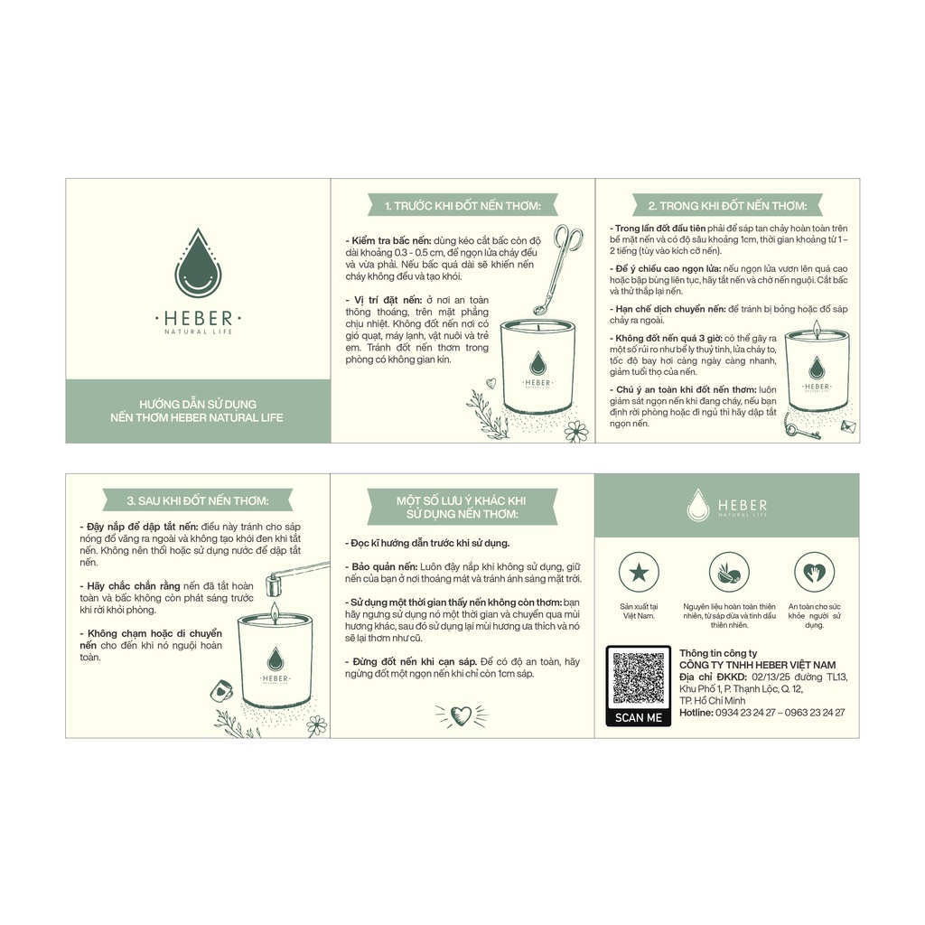 Hãy tận hưởng không gian thư giãn và cảm nhận trải nghiệm đầy thú vị với Heber Natural Life Scented Candles. Chúng tôi hy vọng rằng bạn sẽ yêu thích sản phẩm này và tận hưởng cảm giác thư giãn đích thực mà nó mang lại cho bạn.